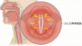 ①本来使うべき微細な筋肉の代わりに、首や舌の大きな筋肉(外喉頭筋)で無理やり声を出す。