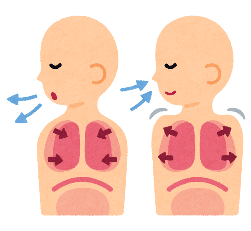 まず息を吸い、横隔膜を下げます。同時に肋骨も膨らんでいる状態かと思います。