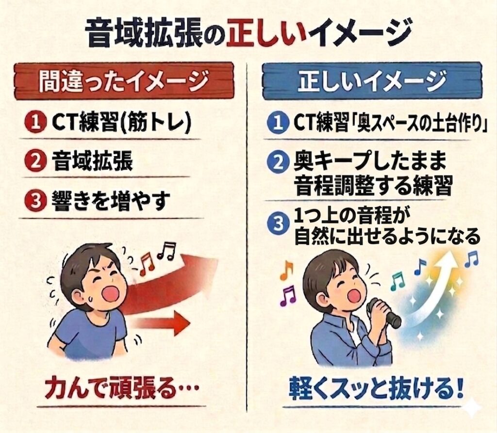 これらを満たすことで、CTは自然と働き、高音は「頑張らなくても出る状態」へと変わっていきます。